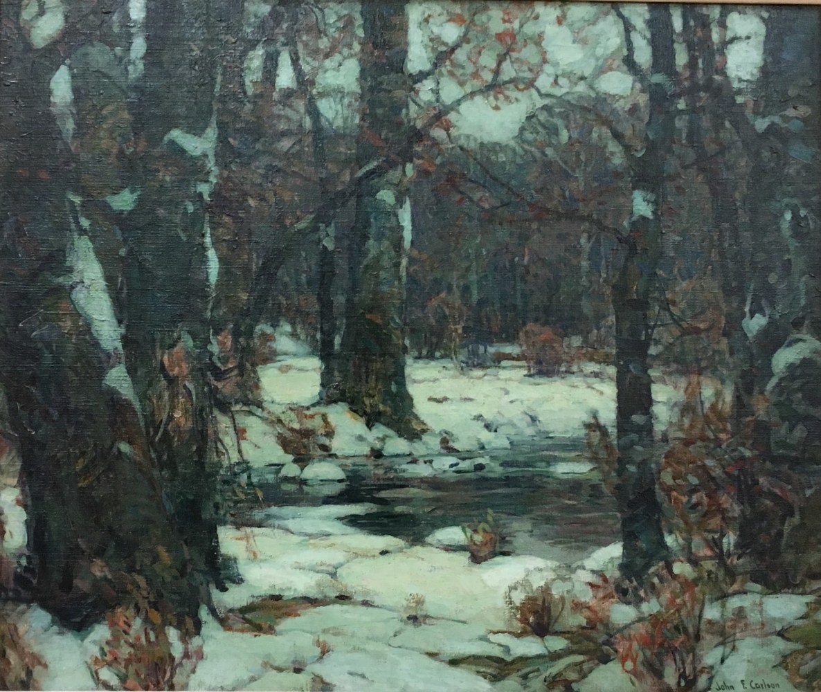 In 1906, Carlson was instrumental in relocating the League's summer school from Connecticut to Woodstock, New York, where he imaged the still beauty of the surrounding countryside in fine Tonalist landscapes. Director of this summer school in 1911, Carlson established the John F. Carlson School of Landscape Painting in 1922.