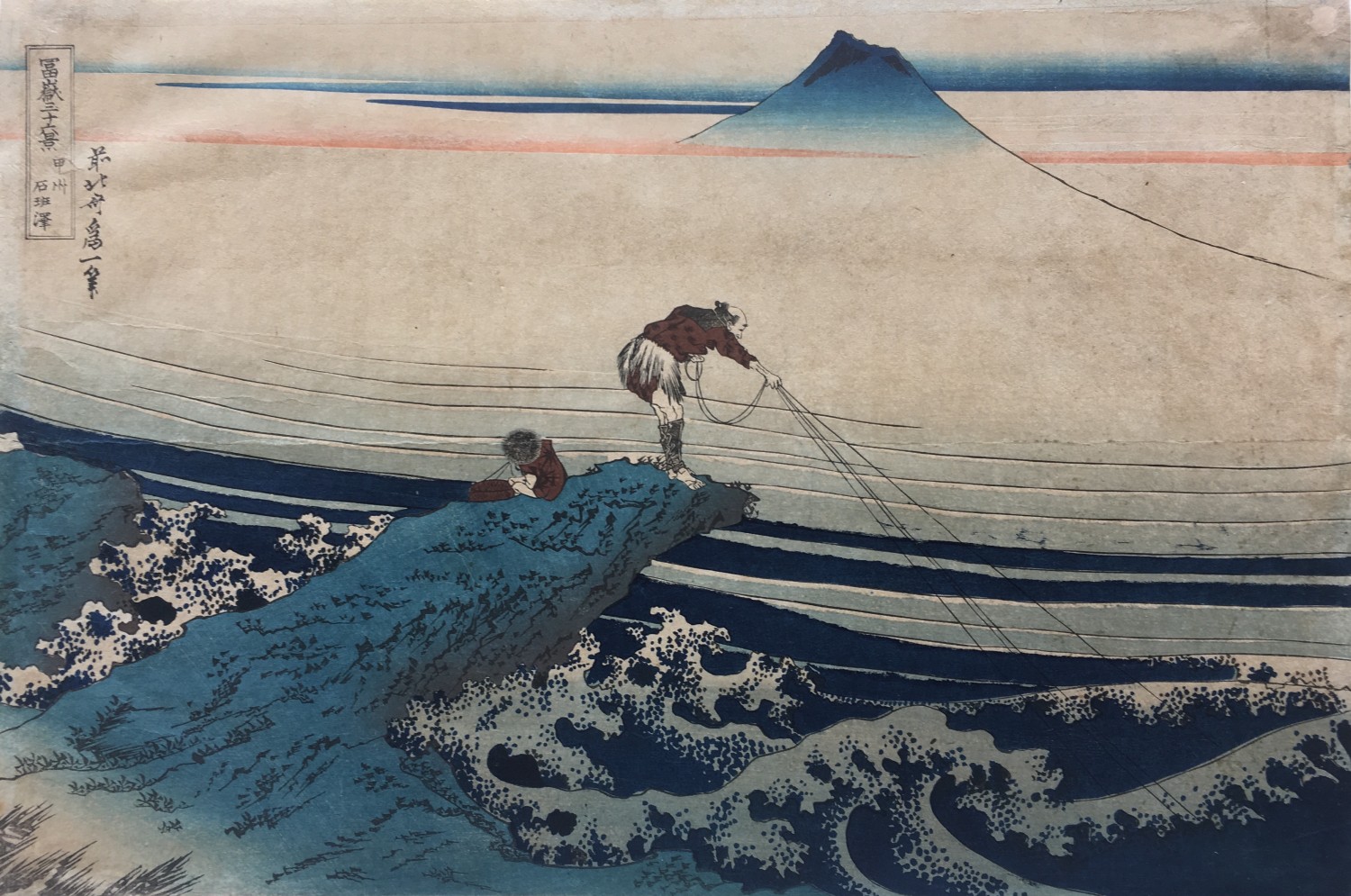 Katsushika Hokusai was a Japanese artist, ukiyo-e painter and printmaker of the Edo period. In his time he was Japan's leading expert on Chinese painting. Born in Edo (now Tokyo), Hokusai is best-known as author of the woodblock print series Thirty-six Views of Mount Fuji (c. 1831) which includes the iconic and internationally recognized print, The Great Wave off Kanagawa, created during the 1820s. Hokusai created the "Thirty-Six Views" both as a response to a domestic travel boom and as part of a personal obsession with Mount Fuji. It was this series, specifically The Great Wave print and Fuji in Clear Weather, that secured Hokusai’s fame both within Japan and overseas. As historian Richard Lane concludes, “Indeed, if there is one work that made Hokusai's name, both in Japan and abroad, it must be this monumental print-series...” While Hokusai's work prior to this series is certainly important, it was not until this series that he gained broad recognition and left a lasting impact on the art world. It was The Great Wave print that initially received, and continues to receive, acclaim and popularity in the Western world.