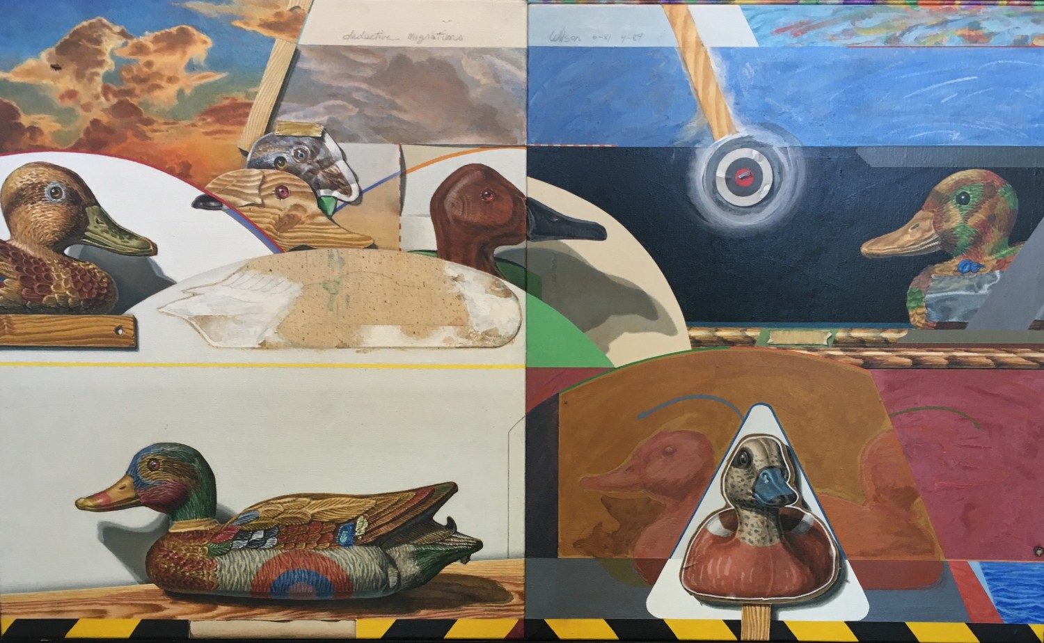 Roger "Sam" Wilson was born in Kansas City, Missouri, in 1943. Wilson is a painter that specializes in realism and illusion. He lives in Salt Lake City, Utah where he teaches at the University of Utah.