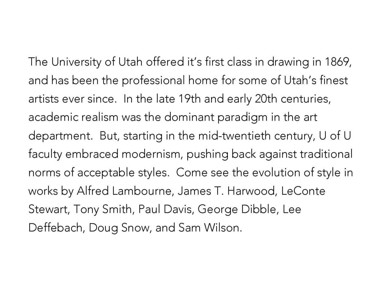 George Dibble was perhaps the earliest proponent of non-objective painting in Utah. He remarked that, “I found my style at the Art Students League. School was drudgery until I got to New York and realized I had a point of view, that I could use it and get recognition for it.” Dibble’s interest in abstraction shaped generations of students at the U of U, where he joined the art faculty in 1949.