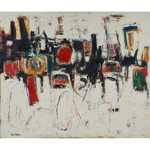 In his own words, Olsen asserts that, “The content of a painting is what the spectator lives or feels while under its effect. The viewer brings to an abstract painting his own inner states and emotions which may or may not coincide with what the artist had in mind when he was painting it. In this respect painting is like music.” – James Hasletine