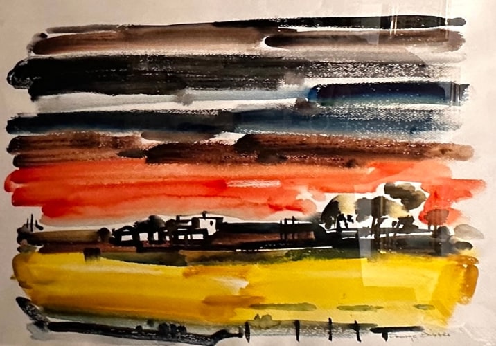 Color offset lithograph on cream wove paper, 1964. Published by Leo Castelli Gallery, New York. A very good impression with strong colors. This image was also printed as a mailer to announce Lichtenstein's (1923-1997) "Landscapes" exhibition at Leo Castelli Gallery from October 24-November 19, 1964.