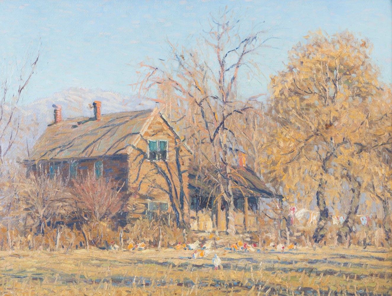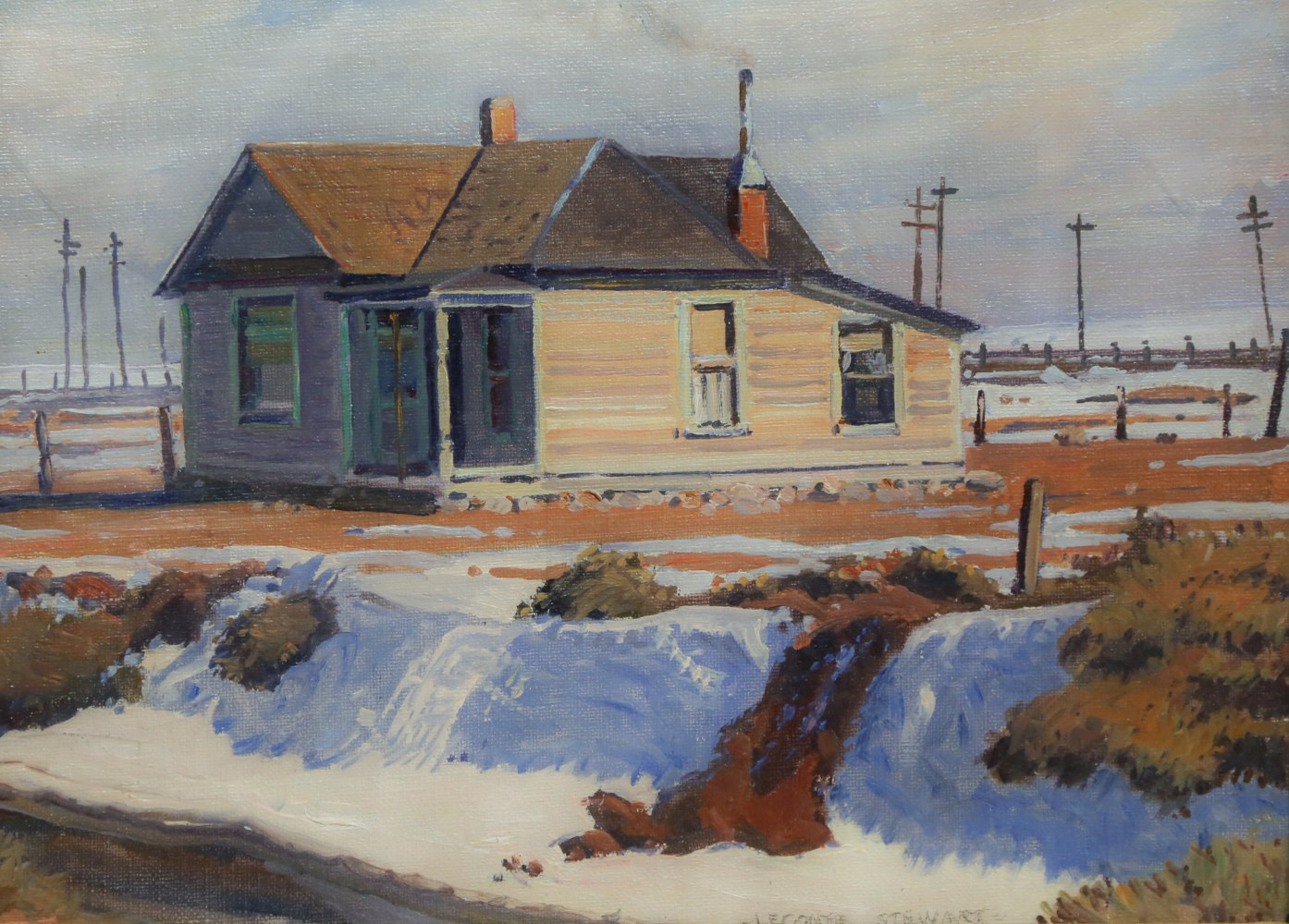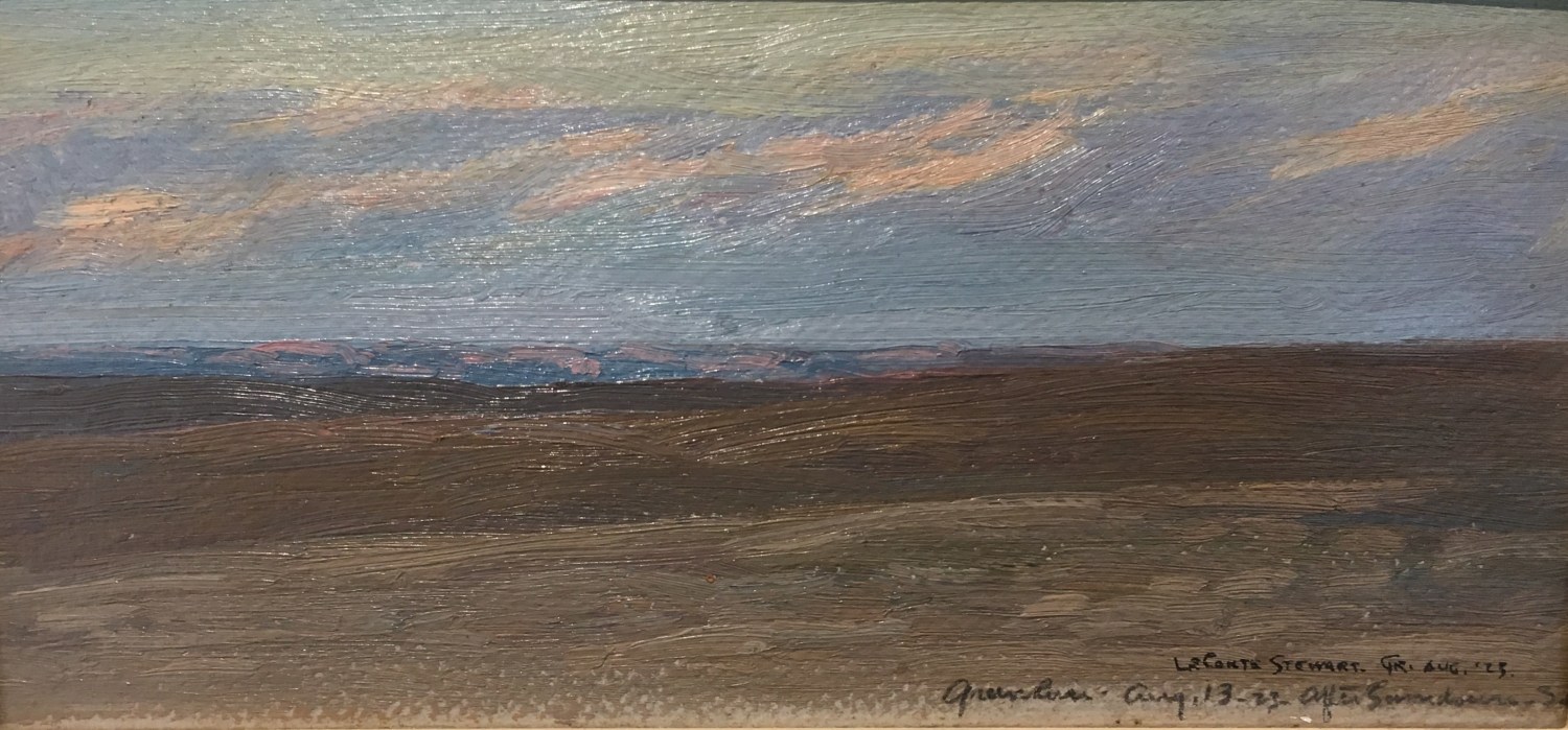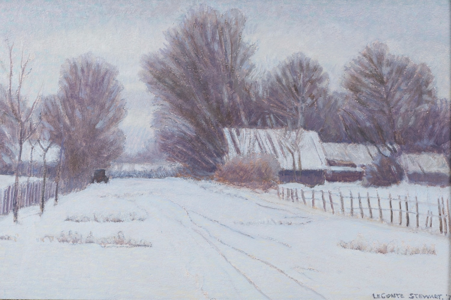 LeConte Stewart was born in 1891 in Glenwood, Utah. His extensive art education began with study in 1912 at the University of Utah with Edwin Evans and private instruction with A.B. Wright. From 1913 through 1914, he attended the Art Students League summer school at Woodstock, New York where he studied with John F. Carlson and Walter Goltz. He later attended the Pennsylvania Academy of Fine Arts in Chester Springs.