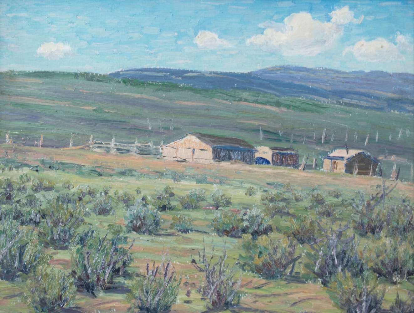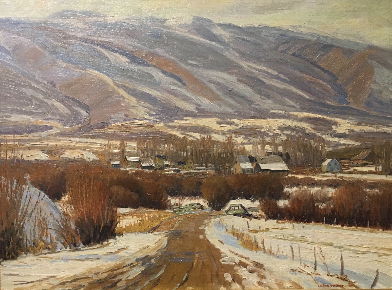 LeConte Stewart mainly painted oil landscapes on-site, which he usually painted quickly. He is predominantly known for his unidealized paintings of rural Utah, but he was also very productive in portraiture, mural painting, drawing, etching, lithography, pastel, and design.