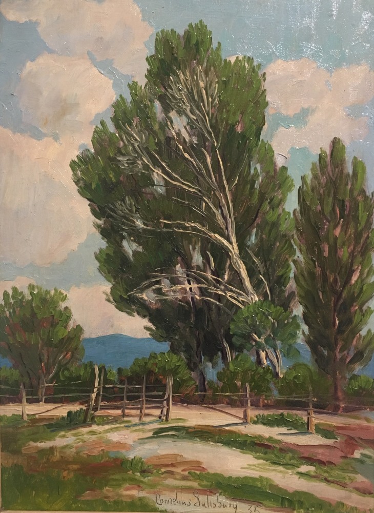 Cornelius Salisbury studied with some of the most influential teachers of his day, including William Dufner at the Art Students League, in New York City, and instructors at the Corcoran Gallery in Washington, D.C., and at the Broadmoor Art Academy in Colorado Springs. This scene reflects the representational, Barbizon style he employed to celebrate the mostly rural Utah landscape of the early 20th century.